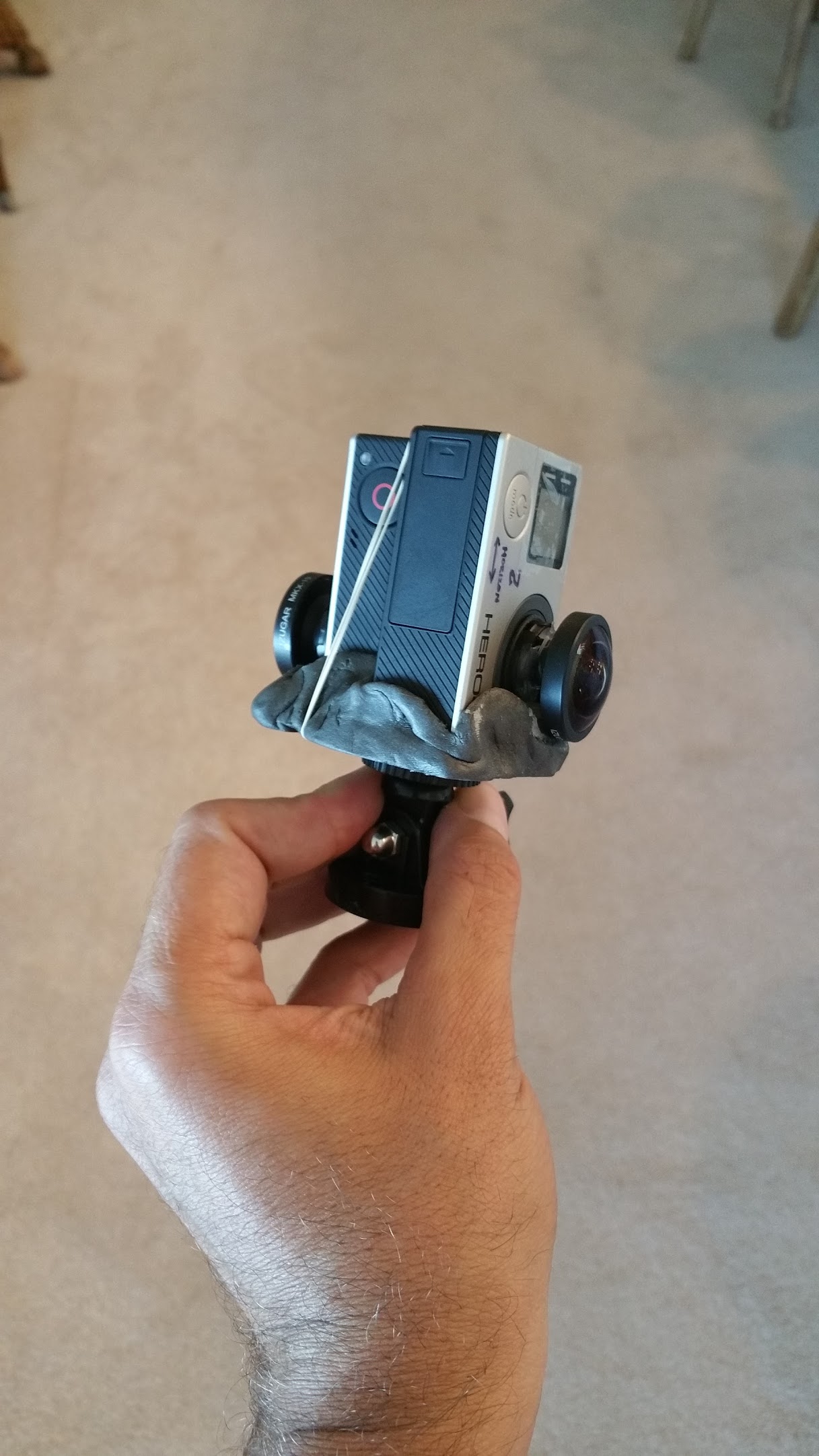 So this is step #1 – Creating your RIG. First thing I would recommend is to modify you GoPro Camera and add a larger FOV lense. Such as the picture elucidates below. I started making one from Epoxy Putty then continued with 3D Printing Technology. In addition you will need Entaniya Lenses or Izugar Lenses